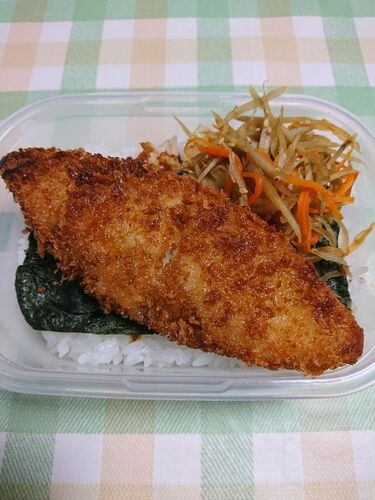 おうちDEのり弁 業務スーパーで買った冷凍の白身魚フライ。 10枚入り税抜き289円。1枚約30円です。 開封前の写真を撮り忘れてしまいました こちらを油で揚げて、きんぴらごぼうも作り、 のり弁風にしました。 海苔の下、つまり、ごはんの上には、昨日紹介 し…