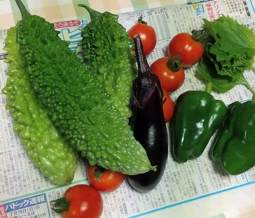 採ったどー ゴーヤは、今年初の収穫です。 夏野菜は、素人でも簡単に育てられるので、 おすすめです。 野菜の下に敷いている新聞は、 スポーツ新聞です^^ 新聞の購読をやめてしまったので、 競馬のレースの予想をするために夫が買って いる『東スポ』しかあ…