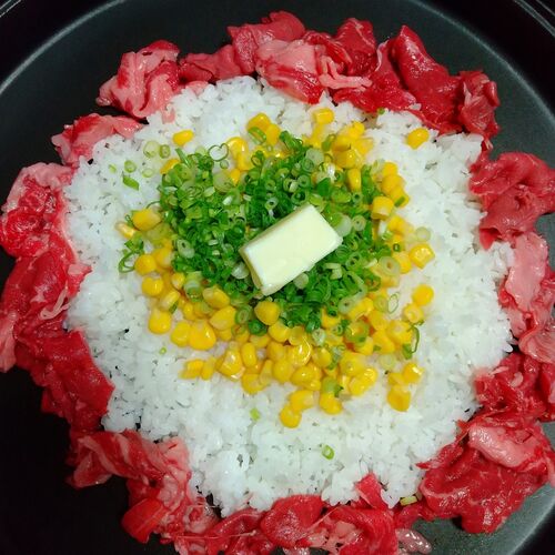 みんなでワイワイ ホットプレートに材料を載せます。 てっぺんにはバターを。いつものことだけど、牛肉が少ない。笑 お肉を炒めながら、塩コショウ。 お肉に火が通ったら全体を混ぜ混ぜして、 醤油ダレで味付け。 私は、醤油・酒・みりんで作った特製ダレを …