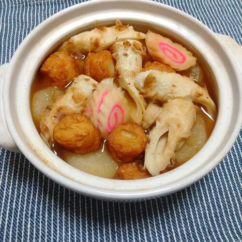 おでん おでんを作って、 出来上がってみると、 あれ、なんだか、練り物だらけ… なんてことがよくあります。(笑) 今回は、味付けに、かき醤油も入れてみ ました。なぜ、入れたかというと、 かき醤油って、買ったはいいけど、あま り使わない。 冷蔵庫の中で…