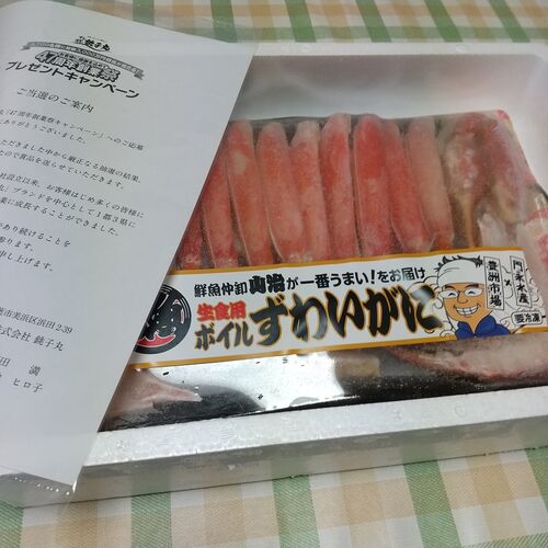 こんなことある!? 懸賞が良く当たる夫の話は、このブログ で何度も書いていますが、 昨日も、当選品が届いたのですよ。 それが、カニでした。 先月は、3万円の電子マネーが当たりま したから、 カニだけでは、そんなに驚かないのです が、 なにが、スゴい…