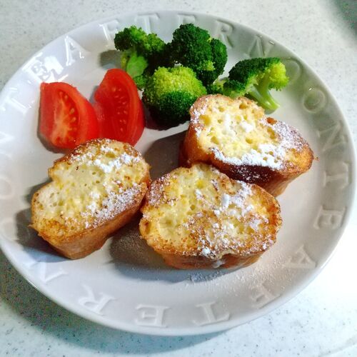 バケットでフレンチトースト クリスマスで余ったバケットで フレンチトーストを作りました。 フレンチトーストって、簡単に作れま す。 卵・牛乳・砂糖を混ぜて卵液を作り、パ ンを浸します。 フライパンにバターを敷いて、卵液に漬 けたパンを焼きます。 粉…
