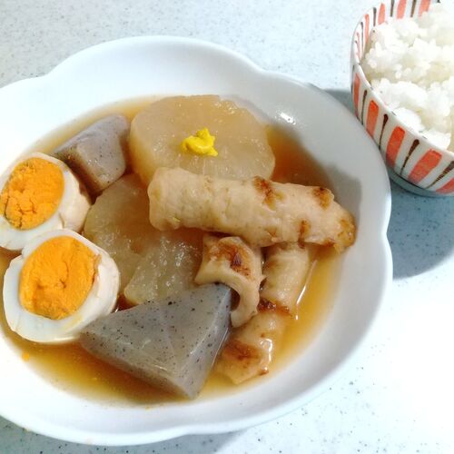 本日、仕事納め! 今日頑張れば、年末年始のお休みに突入 ということで、 どうしても浮かれがちです。 年内最後の仕事、ミスをしないように気 をつけたいです。 味しみしみのおでんで朝ごはん。
