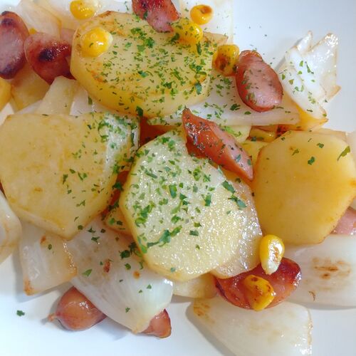 息子が1泊して帰っていきました。ニャ ンが留守番中なので冷房は付けっぱなし で来たそうです。 電車に乗って、わざわざジャガイモを持 ってきてくれたのが嬉しかった! そのジャガイモで、ジャーマンポテトや フライドポテトを作りました。 北あかりという…