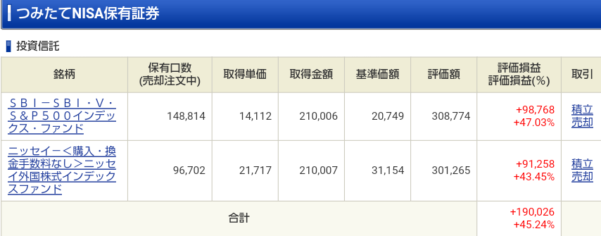 前回、つみたてNISAの状況を確認した
