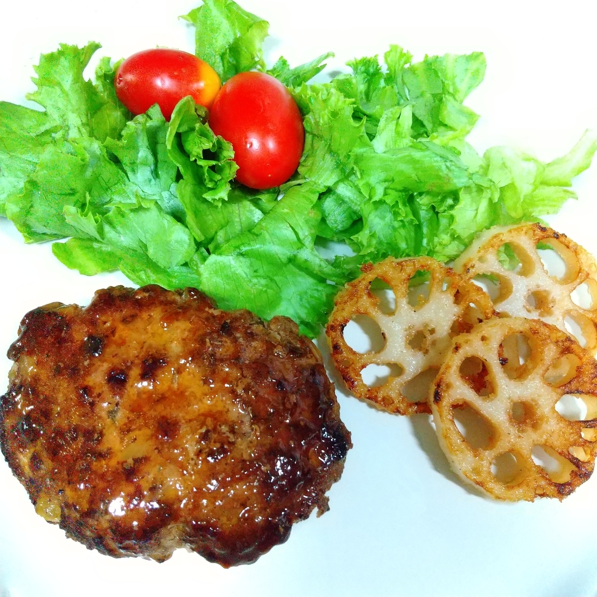 ハンバーグを作りました。焦げました。 裏側は黒いです😉